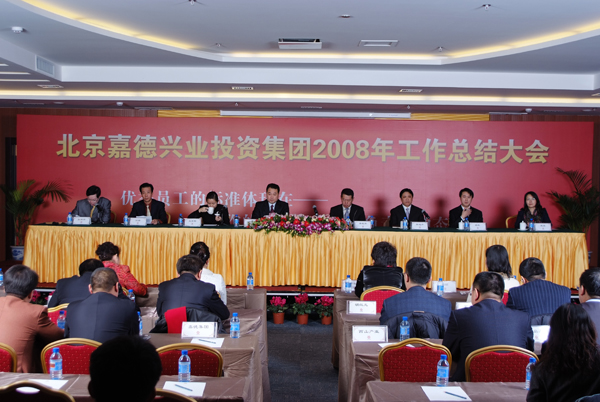 2009年1月20日,嘉德投資集團在北京溫都水城會議中心舉辦了2008工作總結(jié)大會,參加的公司有:佰嘉置業(yè)、三元嘉業(yè)、秦皇島嘉德、昌地經(jīng)紀全體員工以及西山產(chǎn)業(yè)的領(lǐng)導(dǎo)。